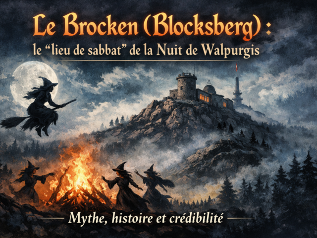 Montagne enveloppée de brume, sommet battu par les vents, le Brocken — aussi appelé Blocksberg — est devenu l’un des lieux de sabbat les plus célèbres d’Europe. Popularisé par Goethe dans Faust, ce sommet du Harz s’impose comme un symbole puissant où folklore ancien, peurs des chasses aux sorcières et imaginaire littéraire se mêlent. Mais derrière la Walpurgisnacht et ses sorcières en vol nocturne, que disent réellement l’histoire et les sources ? Mythe collectif ou lieu de croyances réinterprétées, le Brocken révèle bien plus qu’une simple légende…