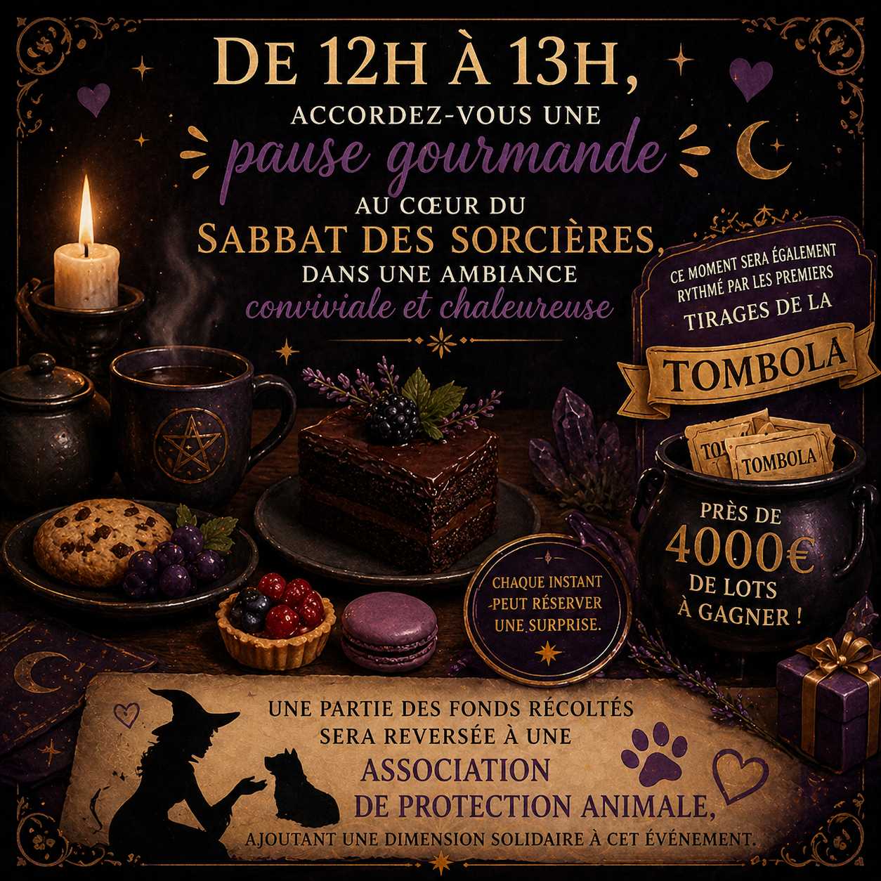 De 12h à 13h, accordez-vous une pause gourmande au cœur du Sabbat des Sorcières, dans une ambiance conviviale et chaleureuse.
