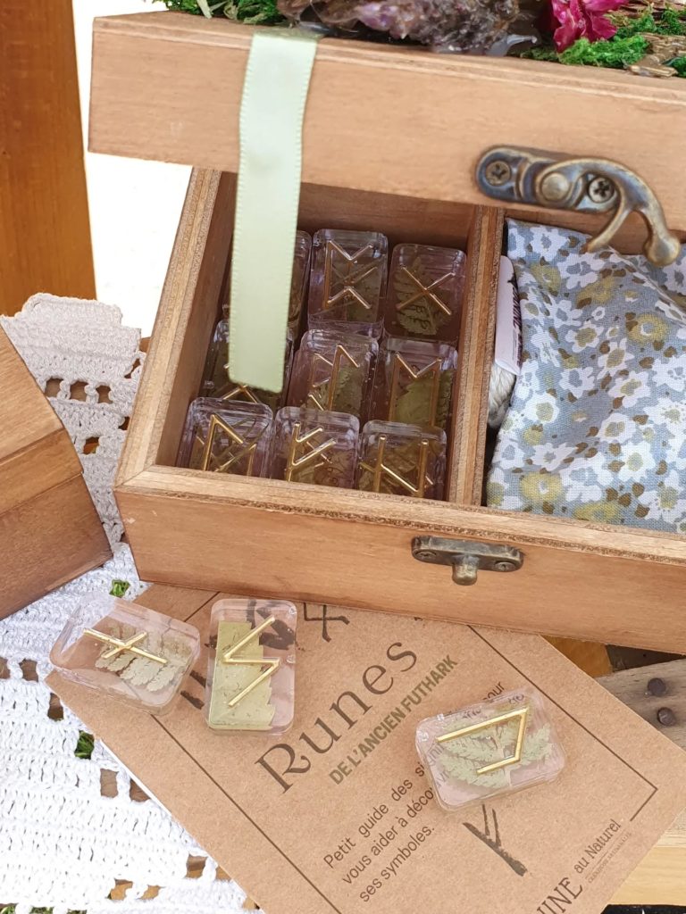- ᚠ Runes du Vieux Futhark accompagnées de leur coffret en bois
