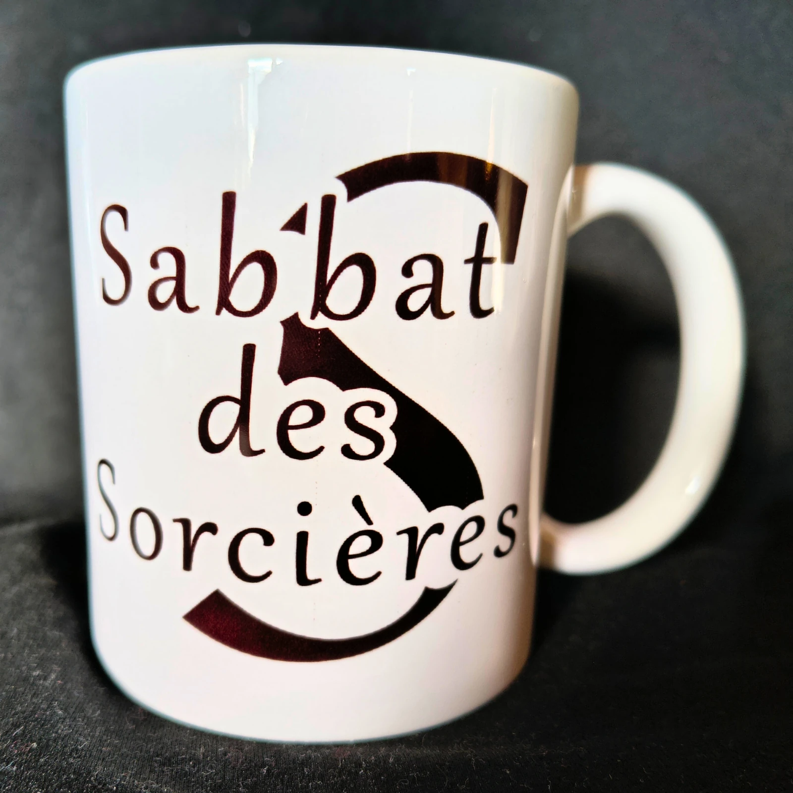 Quoi de mieux pour savourer votre infusion de plantes sacrées ou votre café matinal qu’un mug qui a du sens ? Créés spécialement pour notre événement, ces mugs exclusifs célèbrent l’esprit du Sabbat des Sorcières. D’un côté, retrouvez le nom de notre rassemblement ; de l’autre, un visuel puissant issu de l’univers de la magie et du mystère.